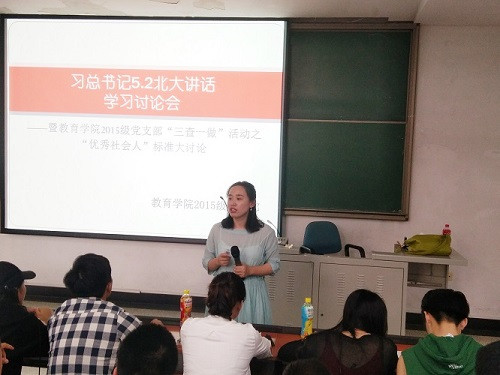 2018年5月7日星期一中午十二点必赢565net官网2015级党支部在教学楼421教室召开"习近平总书记5.2北大讲话"——学习讨论。暨必赢565net官网2015级党支部“三查一做”活动之“优秀社会人”标准大讨论,党支部全体人员以及四十多名积极分子参加此次大会,本次会议由必赢565net官网2015级辅导员林莹晓雪老师主持召开。