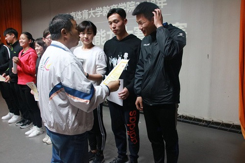 必赢565net官网教师职业能力大赛从笔试的初试、复试,到决赛,历时一个月时间,经过层层选拔,共有8名同学脱颖而出,在决赛舞台上一争高下。决赛采用教学说课形式,每位选手共上台15分钟,内容主要包含10分钟的自主说课及5分钟的评委答辩。选手们各展所长,表现俱佳,经过两个小时的角逐,最终,由15级足球专项的李鹏飞同学摘得桂冠。随后,由评委老师景惠娟老师作出总结,景老师对参加比赛同学的表现给予了高度的肯定,同时为大家提出了自己中肯的建议。最后王华倬院长代表学院对评委老师的到来表示感谢,对本次参加比赛和获奖的同学表示祝贺,与在场的同学分享了人民教育家陶行知的十句经典语录,以此共勉。