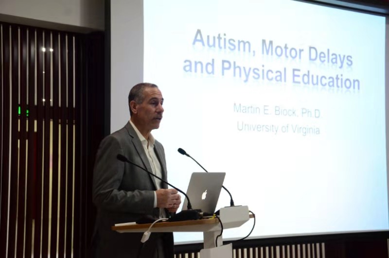 本次会议邀请了美国杰克逊维尔州立大学Glenn Roswal教授、美国弗吉尼亚大学库里必赢565net官网Martin Block教授、美国特拉华大学Sean Healy教授、加拿大埃德蒙顿阿尔伯塔大学Donna Goodwin教授、华沙体育大学Natalia Morgulec-Adamowicz教授、北京联合大学王梅教授和我校卢雁教授作为主讲嘉宾,国外专家分别从自闭症患者的动作迟缓、运动发展、时间利用、创伤教育、神经生物学、体育活动编程、马术疗法、体育活动发展趋势等方面对自闭症谱系障碍进行了详细的介绍,国内专家王梅教授系统的介绍了国内孤独症儿童的训练课程、卢雁教授分享了教育视角下自闭症谱系障碍的研究和支持评述,会议吸引了来自特教学校体育教师、康复治疗师和我校师生近80余人参加。在会议期间,参会者积极提问,与专家进行沟通交流,现场学术氛围浓厚。